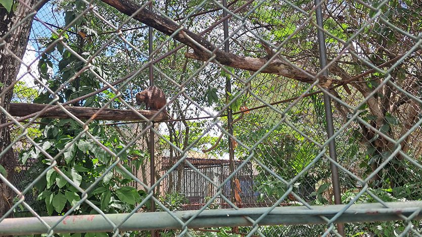 En el recinto contiguo viven Maggie y Mimita, las dos chimpancés (Pan troglodytes) del zoológico. Díaz Delgado no duda en calificarlas como los animales más peligrosos del complejo —un honor, si así puede llamarse, que comparten con todos los zoológicos del país—.
