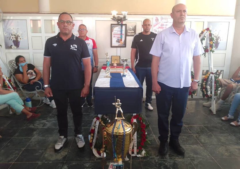 Julio Heriberto Gómez Casanova, primer secretario del Comité Provincial del Partido Comunista de Cuba y Juan Reinaldo Pérez Pardo, presidente de la Federación Cubana de Béisbol y Softbol, encabezaron una de las guardias de honor junto al féretro.