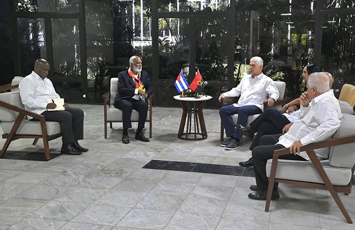El mandatario cubano afirmó que la visita de la delegación angolana dio continuidad al acuerdo de cooperación entre los dos Partidos y destacó los vínculos históricos que unen a los Gobiernos y pueblos de Cuba y Angola.