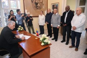 El Libro de Condolencias ha sido firmado durante estos días por autoridades cubanas, miembros del Cuerpo Diplomático y nuestro pueblo, conmocionado desde la madrugada del 3 de enero por el ataque criminal y secuestro del presidente Maduro y su compañera Cilia.