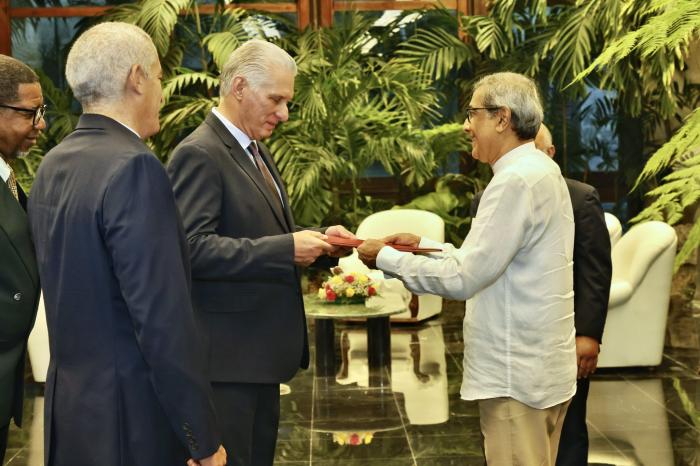 Con gratitud y disposición de apoyar en cuanto sea necesario para realizar su gestión, el Primer Secretario del Comité Central del Partido Comunista y Presidente de la República, Miguel Díaz-Canel Bermúdez, recibió este martes las cartas credenciales de diez nuevos embajadores extraordinarios y plenipotenciarios acreditados en Cuba.