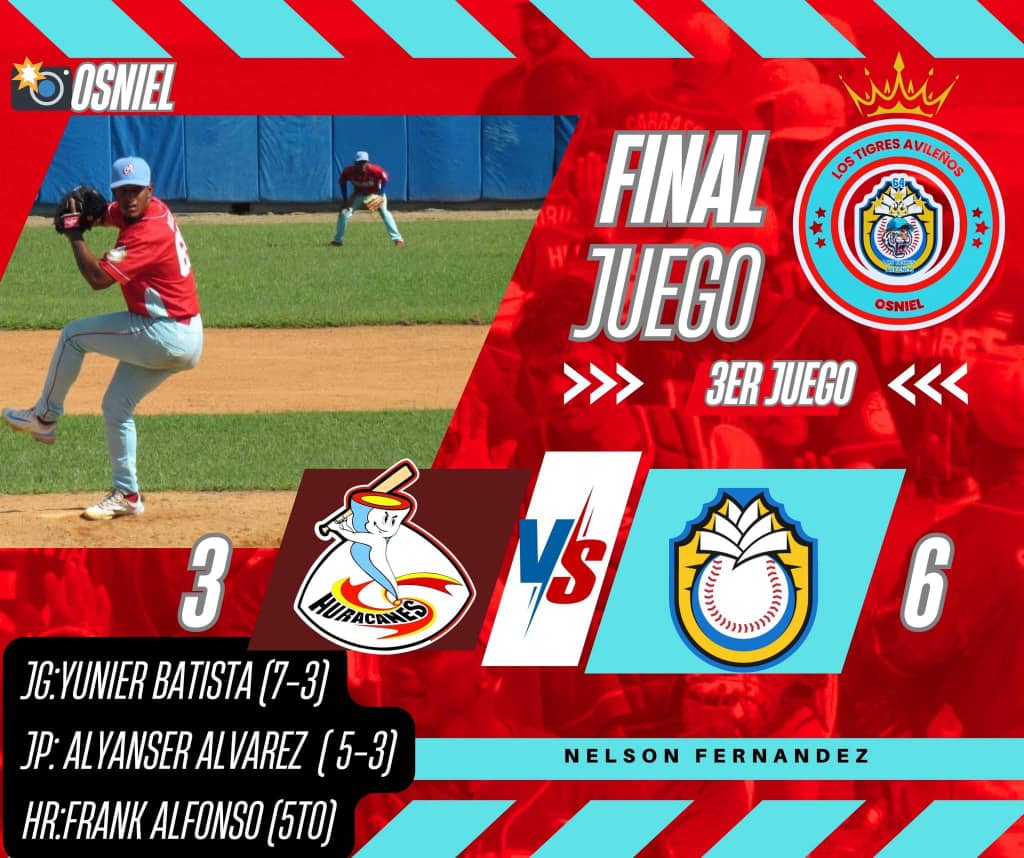 La derrota fue para Alyacer Álvarez, abridor de Los Huracanes. Por su parte, Frank Alfonso conectó un cuadrangular.