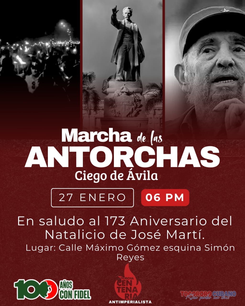 La Unión de Jóvenes Comunistas (UJC) junto a la Federación Estudiantil Universitaria (FEU) en Ciego de Ávila, convocan a participar este 27 de enero en la tradicional Marcha de las Antorchas, con motivo del aniversario 173 del natalicio de José Martí.