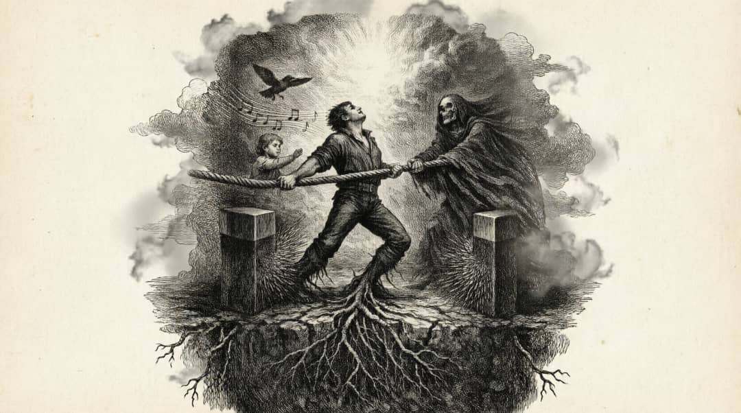 Frente a la tracción de la muerte, el poema despliega los contrapesos que anclan al sujeto a la vida: la tierra, la raíz, el hijo, el ave, el canto. Esta enumeración no es casual ni decorativa; cada elemento representa un vínculo concreto con el mundo de los vivos, una razón de permanencia.